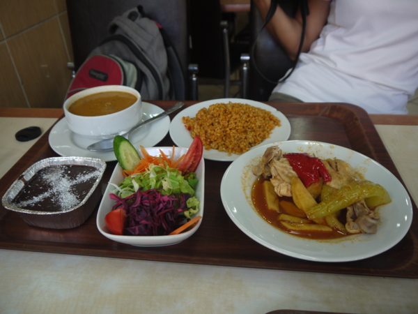 我們點了米飯、生菜沙拉、茄子蒸肉、雞腿、濃湯、巧克力布丁等, 2人共花費25TL,欣一覺得茄子煮得比塞爾丘克的民宿好吃。吃大眾食堂真是奇特有趣的經驗,兩人因為過度興奮,菜點太多,每盤份量又多,根本吃不完,已經吃飽了,還在往肚子裡塞。店裡難得出現外來客,又是東方女子,店裡的工作人員好像也感新鮮,任由我們拍照,服務特別周到。
