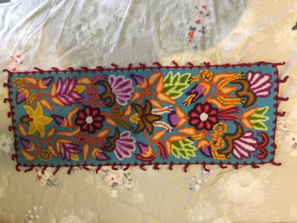在皮薩克市集買了一塊花兒朵朵開的毛線布,手工編織,精緻細膩,挑上它的原因之一是比較便宜。老闆出價140元新索爾幣(1元新索爾幣可兌換約9元多臺幣),我說:80索爾,他無論說多少錢,我都說80索爾,最後就賣給我了。我是不是該殺半價?