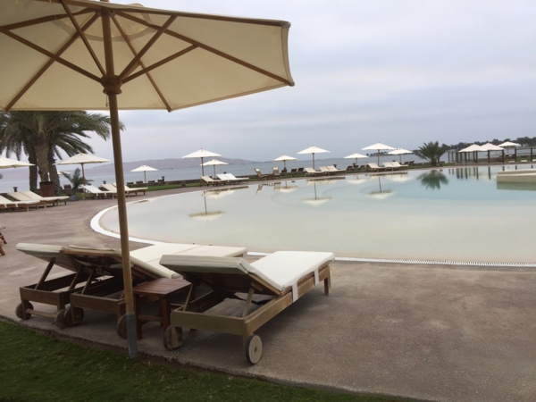 放下行李,到園區看看。占地廣大的旅館區,客房建物圍繞游泳池,往外是海邊。