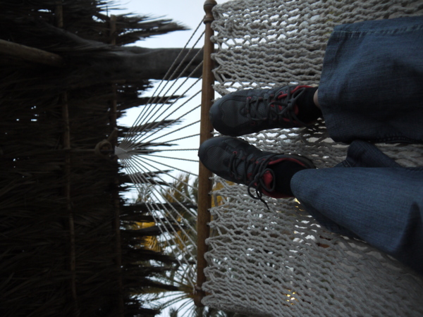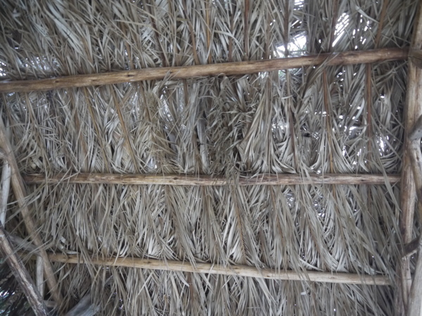 我躺在茅草涼亭裡的吊床上,望著茅草屋頂。