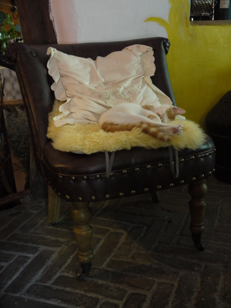 男主人養的其中兩隻流浪貓,一隻慵懶的睡在高椅上,一隻小小貓正睜大眼睛看著陌生人。主人說,民宿附近的母野貓生了一窩小貓,這隻小小貓非常虛弱,就帶回來養。