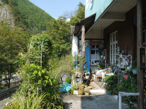 「山行者」民宿原是農舍,經過整修,成為現在裝飾繁複雅致的風格。民宿緊鄰馬路,細長的馬路沿溪蜿蜒而建,順著馬路往裡走,會到十門峽風景區。