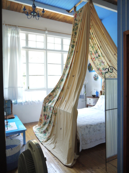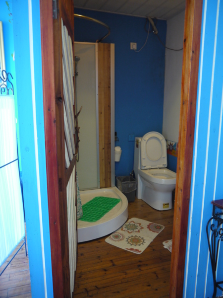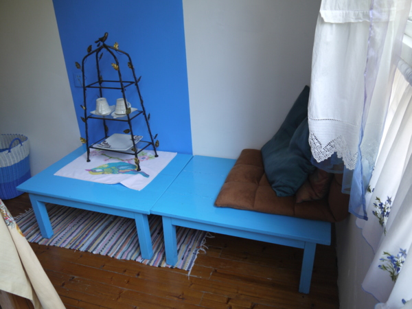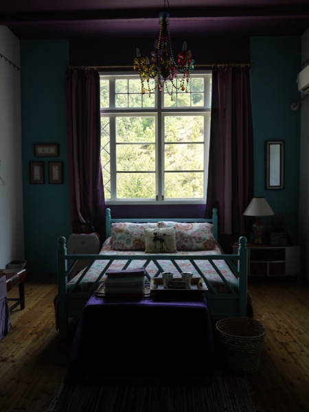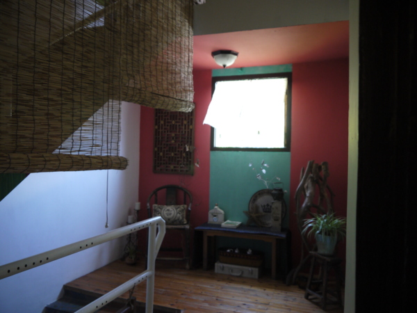 一入門,是一個小起居室,茶几旁放一張可坐臥的長椅,連接兩個有雙人床的房間,兩房之間有浴室一間,算算這個房間,至少可以睡5個人。民宿顯然設計給家庭住宿,像我經常三、兩個好女結伴出門的旅遊團體,並不適合投宿。體貼的王勤將男性家眾安排睡外面的房間,我們則使用較隱密的裡間。