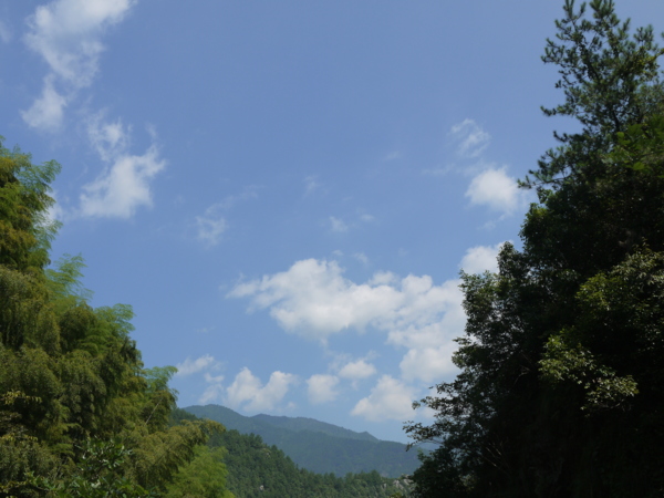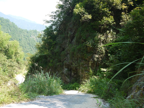 從有螢火蟲的山路往上開始爬坡,沿路傳來谷底溪水的淙淙水聲,路邊草叢有蝴蝶、蜻蜓飛舞或停駐,有農人上山種田回來。這一路到後來,山徑越行越陡,豔陽實在太熱情,我終於受不了了,便放棄坐在路邊陰涼處,讓王勤自個兒去探險。王勤沒走到瀑布就回頭了,下山後,兩人又下到溪邊玩水。