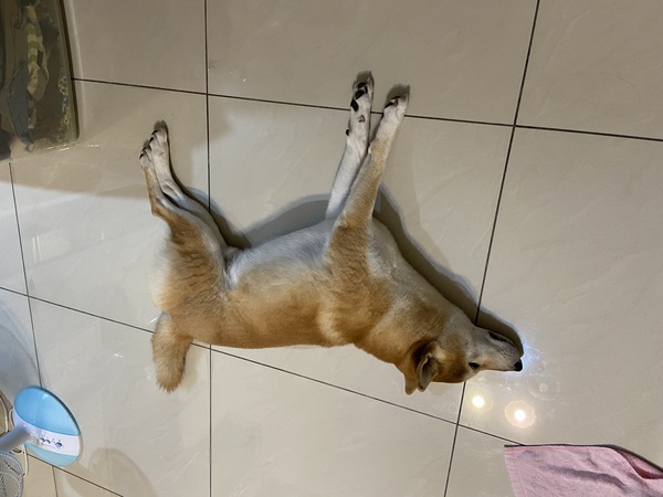 回到家,賴皮地板趴一下,沙發趴一下,變換著不同的趴姿。原來啊,牠把牠的聰明和力氣都用在怎麼趴著最舒服。