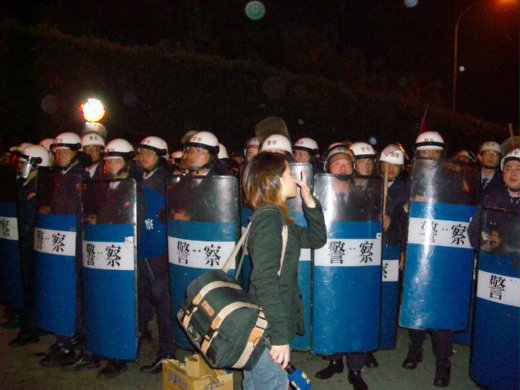 期間有女警進入人群中想作柔性的勸離,但被大家高喊「警察請出去」的口號而被迫放棄驅離,這些女警溫和的作風,讓我們絕對聯想不到,下一波的衝突竟是流血的衝突。