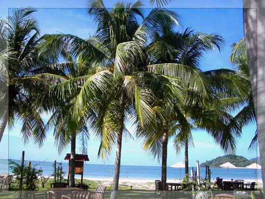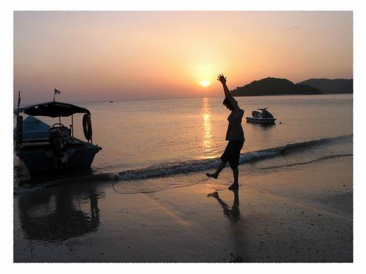 早晨起來,推開房門,就可直接走向沙灘,和海風打個照面,如果起的更早,可以坐在沙灘上等待日出,和太陽公公道早安,。清晨或者沙灘漫步,或者撿拾美麗貝殼,或者逛到相鄰的「彩虹渡假村」,看看馬來式的高腳小木屋,看看花團錦簇的渡假村步道,或者看馬來人在海灘邊捕魚,都可增加不少趣事;傍晚時分,集合沙灘上的志同道合,來場沙灘足球友誼賽,你奔我跑、你丟我踼,不亦樂乎。落日夕陽,也是不可錯過的美景,一片火紅,加上你曼妙的倩影,肯定會殺掉不少的記憶體。