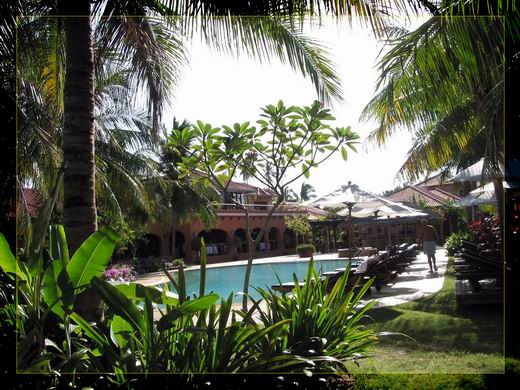 說到它隔鄰的「彩虹渡假村」,台灣有很多旅遊團都安排住在這裏,因為那邊的房間較多,純粹是大型飯店的管理,比起casa del mar就缺乏了那麼一點人性化,人來人往,好像就只是來住宿而已。彩虹渡假村是馬來式的高腳小木屋,但房間大都不面臨海邊,感覺起來比較不像住在海邊渡假村,但它的內部佈置花團錦簇,就好像一座花城,我和老公每大早上都逛到那裏去拍照。