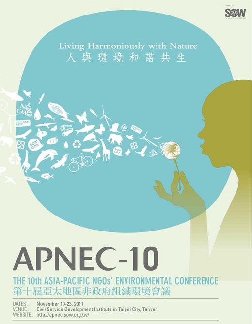 歡迎國內各大學與NGO團體報名參加11/20 21亞太NGO環境會議,如果參予擺攤或是海報展出還有免費名額,活動網頁http://apnec.sow.org.tw/,或洽荒野02-23071568玲蘭小姐。