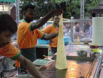 師傅在製 Roti canai 時,那麵糰是揉了又疊,疊了又揉,所以能製造出層層疊疊似千層般的特殊口感。而且師傅總是會在空中甩一甩,將甩開來延展的麵餅再又疊又揉地,最後才在大大的平底鍋上煎烤。因此若稱為甩餅也很貼切,每每看師傅們的「甩功」,這樣的視覺享受直教我讚嘆不已。