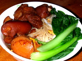 炎熱的週未午後一杯清涼的啤酒 + 好吃的豬腳麵線, 這是海外打工仔特有的家鄉味, 真是太幸福啦!!