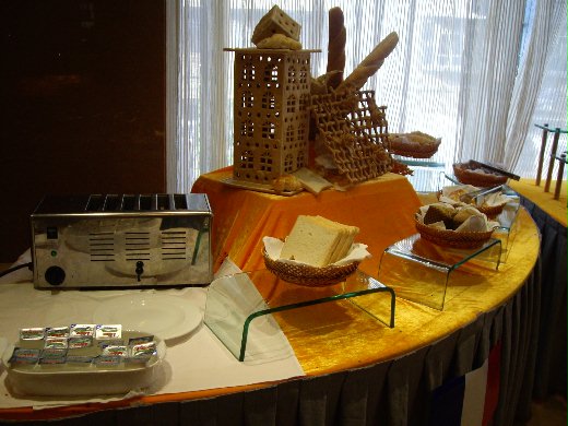 用餐處的環境很舒服,硬體上不用說,還有時間尚早,客人不多。早餐的項目基本中西式都有,每一項餐點的品質都很好,奶油有用冰塊冰著,優格也保持適當的溫度(這裡有些飯店會將優格保持常溫,可是我覺得優格是要冰的啊)。我大約喝了三杯咖啡。