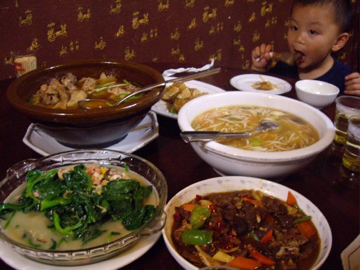 這頓飯老公吃的蠻開心的,土雞煲份量大,我們沒吃完,野豬肉肉質較韌又辣,由老公獨享,當然也吃不完。在遠方的城市,冷冷的下雨天中,我可以吃到大滷麵,覺得當天的麵特別有滋味。