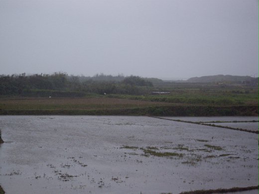 吃完飯後雨勢不歇,姑姑聽說這附近有丹頂鶴棲息區,於是開車去找,經過一個我們常常路過的像橋的地方,發現有制服人員在那裏守候,對,就是這裡。我們搖下車窗,努力在迎面而來的細雨中尋找,終於發現遠方的兩個小白點。制服人員告訴我們總共應該有四隻,寒風細雨的,守護丹頂鶴真是辛苦了。我家小孩自搖下車窗後笑的異常開心,不是因為看到丹頂鶴,是他們在玩閃躲打入雨滴的遊戲。廷廷穩穩當當躲在我的身後,衣服一點兒都沒濕,我整個人好像從水裡走上來一樣。我們停下來找丹頂鶴時,阿嬤她們看到制服人員三位,以為小姑開車違規,被警察攔下,於是趕緊加速逃離現場了。