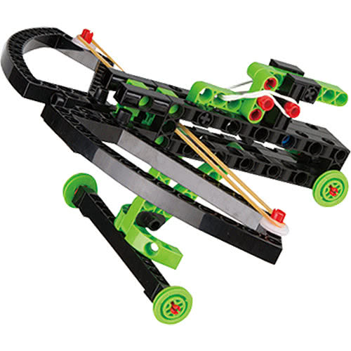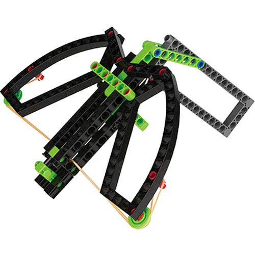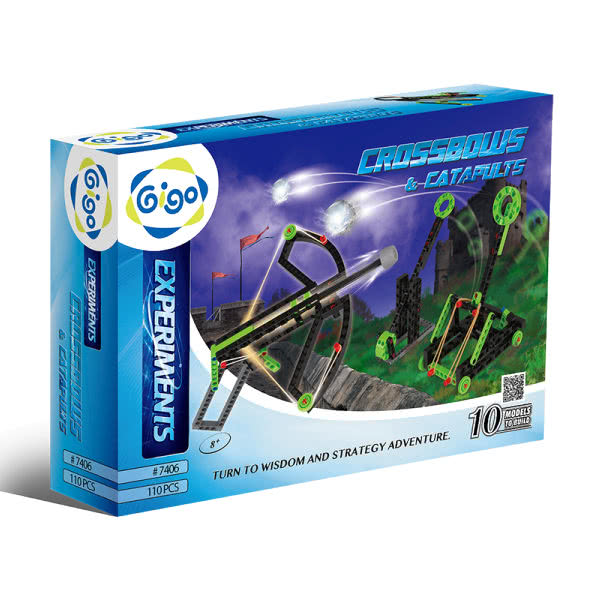 運用橡皮筋或重量能將箭或球彈射出去.實際模擬古代城堡攻防戰。依照實驗原理, 孩子可以組出三種不同的十字弓造型,可以調整不同的橡皮筋固定或纏繞法,測驗不同的綁法是如何影響射出的速度。