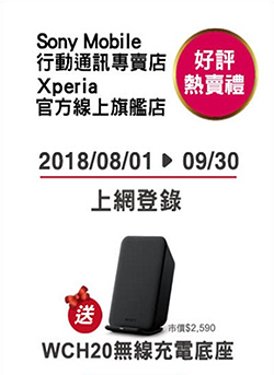 018/08/01-2018/09/30活動期間上網登錄.送WCH20無線充電底座(數量有限.送完為止)