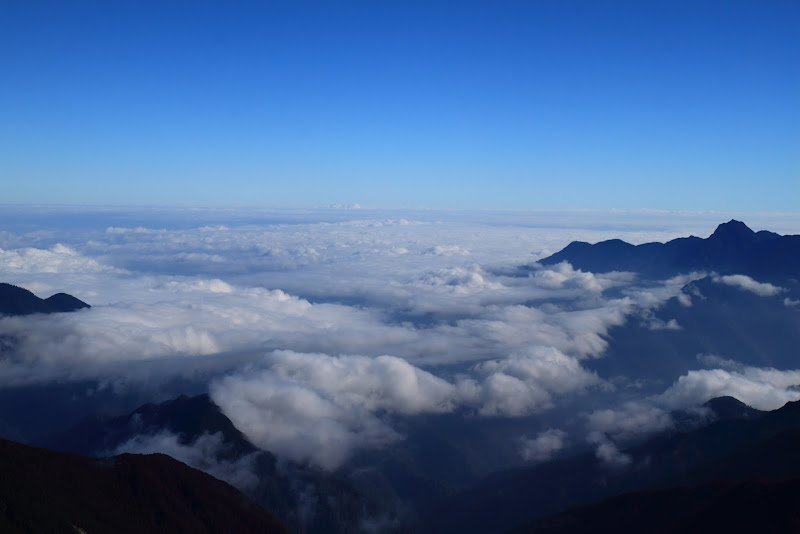 原是雲層繚繞的秀姑巒山,再抵秀姑坪前的枯木群山頭時,已是湛藍無雲的連綿山巒之景。
