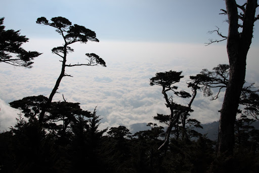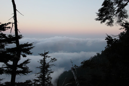 花費了約3小時18分、下午5點4分抵達4.2K檜谷山莊(H2132M),當天僅3隊山友住宿,其中2隊已登頂預明日下山;另一來自高雄4人隊伍預明日登頂。山莊內約有五十幾個床位,且床板上已有鋪有軟墊,我的2人帳篷算是白背了.......。