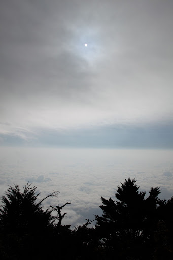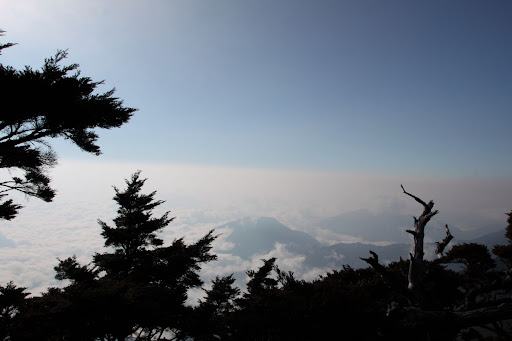 約4小時5分、上午9點2分抵達9K北大武山三角點(H3090M),山上雖景觀遼闊,但雲霧變化相當的迅速,呈現雲海的一邊很快的便被雲霧給覆蓋,僅剩另一邊遼闊的山谷視野.....,休息40分鐘後(上午9點43分)便下山。