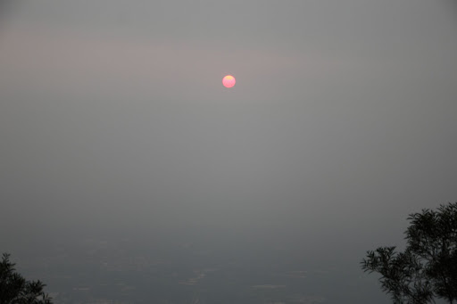 寒喧飽足並於下午1點40分整裝後便下山(分享熱食的山友已先下山),下山時已雲霧繚繞於林道之間;費時2小時12分、下午3點52分回到登山口;再費時1小時9分、下午5點1分回到產業道路7.4K處林道進入點。