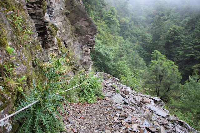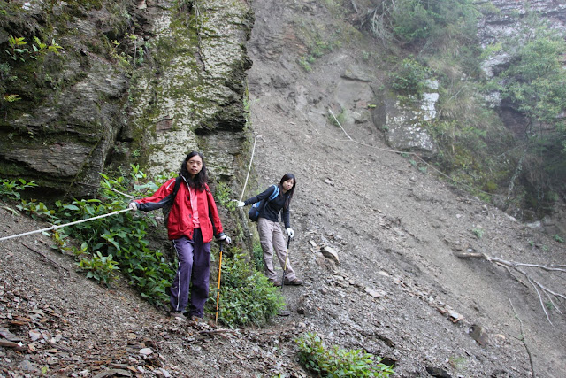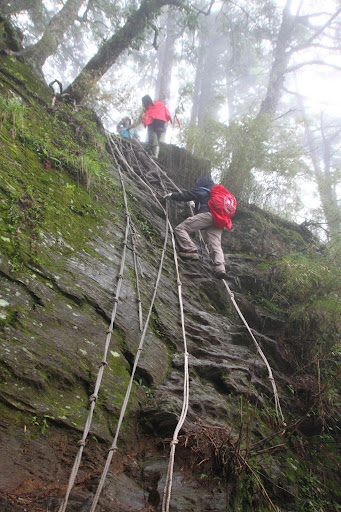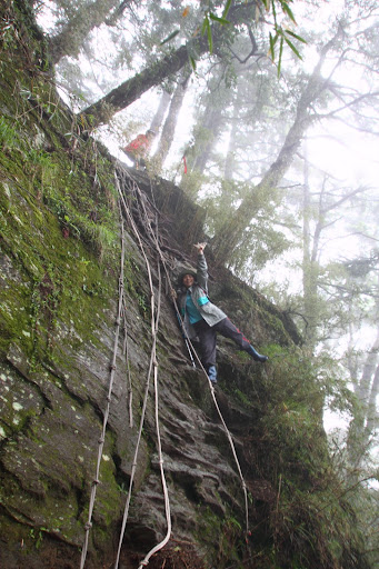 又走了一段時間,約10:39抵達絕壁拉繩處(高度約3120公尺),大伙便陸續
