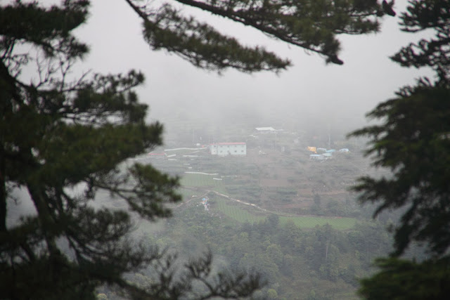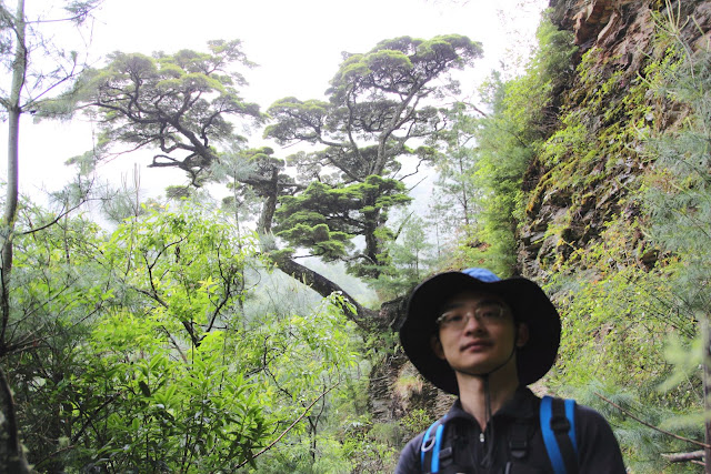 我們拍團照,在準備下山時,巧遇雲霧稍稍撥開的霎那,此時便再拿起相