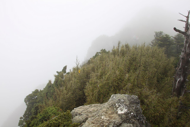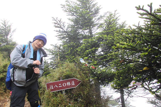 (合歡山隧道旁),在團照後出發步行於820林道,這天陰雨綿綿、雲霧繚繞