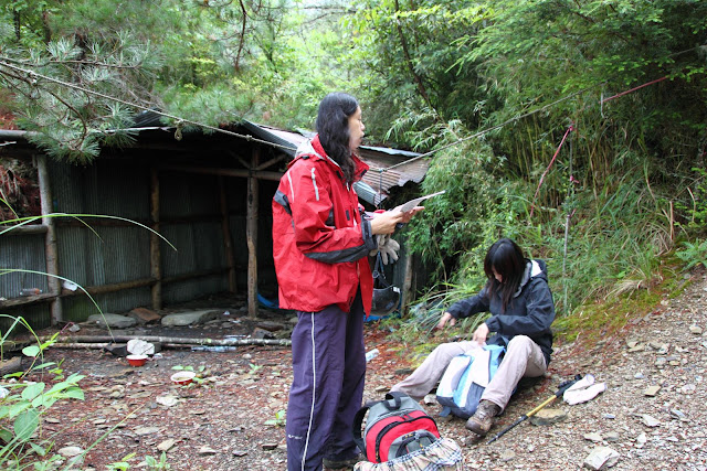 約8:00時我們到了鐵皮工寮,在這兒便稍作休息與補充體力,除團照外,