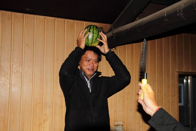 本次操刀者為領隊「豪哥」,標靶為響導「阿信」.............................頭上的西瓜