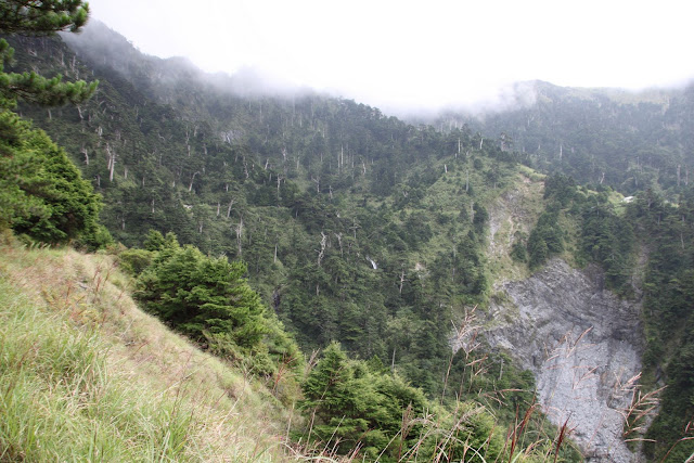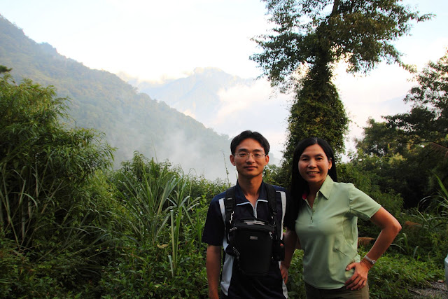 由於已是下午時段,雲霧早就佈滿山區週遭,無遠景可欣賞,但搭配在雲霧