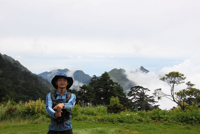 山莊前與山巒合照的我,1347,輕裝出發