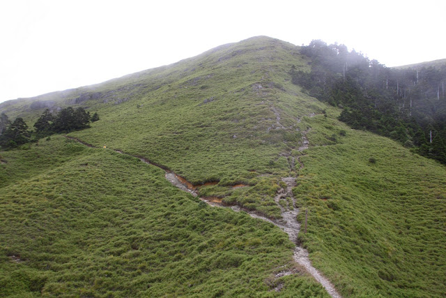 往奇萊南峰續行的箭竹草原坡