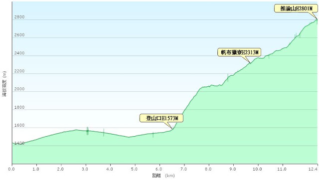 15:42 推論山(12.4K,H2801M),搭帳,17:00 晚餐,19:00 休息