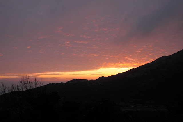 遠望傍晚間的夕陽