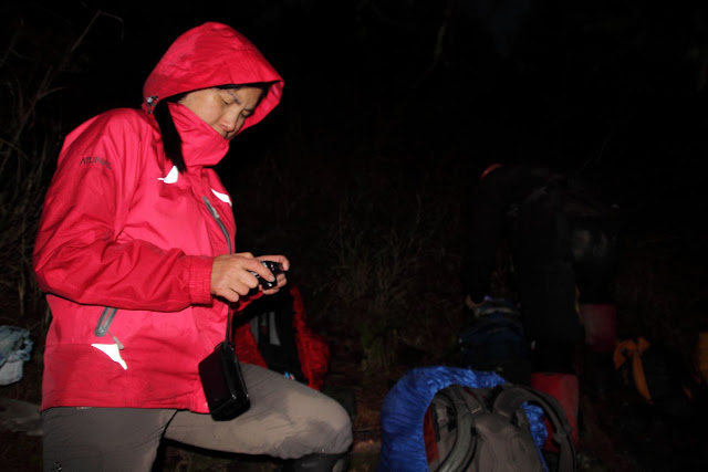 下體力。餐畢恢復些動能後便帶上頭燈繼續於陡下的林道續行著,由於夜晚