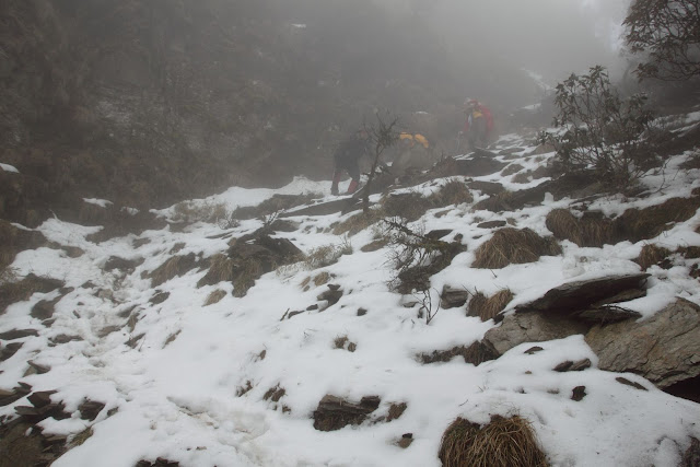 稜線轉下碎石溪溝路,殘雪情況更嚴重了