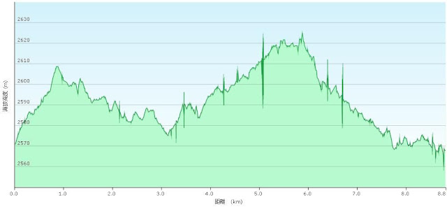 17:43 三叉路(H3023M)→18:17 緩下坡處休息(H2912M),晚餐,19:10 出發→