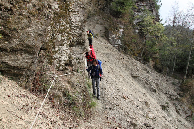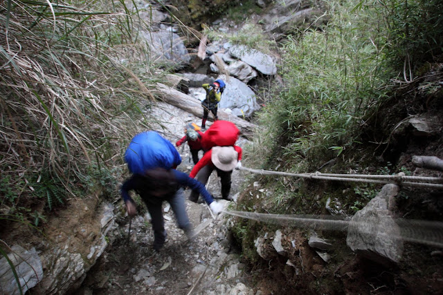 D2:4/4 04:40 起床→06:00 出發(須背水)→08:30 拉繩岩壁→