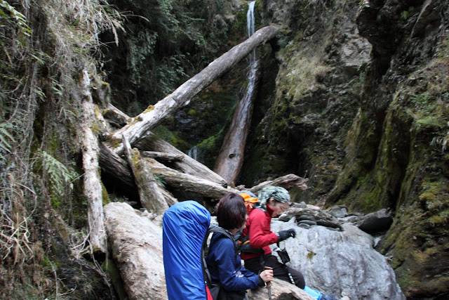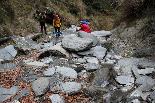 更是嚴重,未著冰爪的我們走在陡下積雪溪溝需得更加的小心,因為依一時