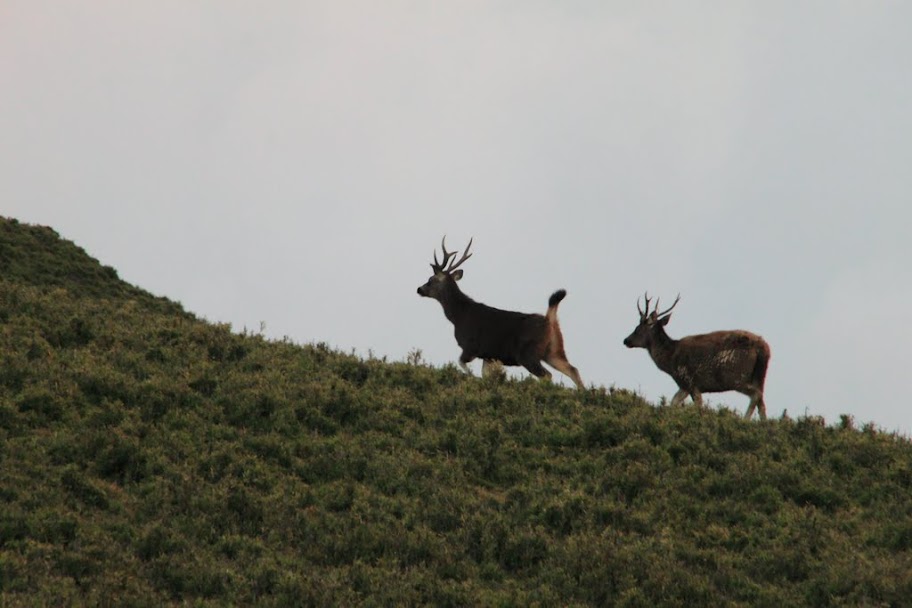 1525,輕裝往東郡大山,途中回望營地及稜線草坡一景