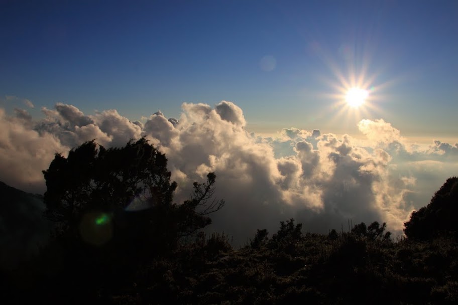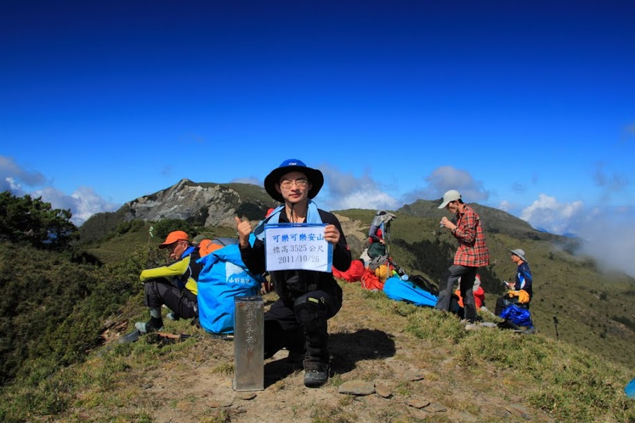 A 營地休息等待後方大伙們全數步抵營地後,輕裝往東郡大山出發,營地至山頭約莫公尺,來回約20至30分左右,由於雲霧飄散周遭之間,僅拍拍登頂照就回營地準備晚餐。營地(往玉山方向)傍晚下之景可說是雲海翻騰,加上夕陽穿梭雲海間的美景、黃昏下山與雲景、水鹿草原奔走與月夜星空下營地之景等,可說是一連串極佳景致下結束本日行程。