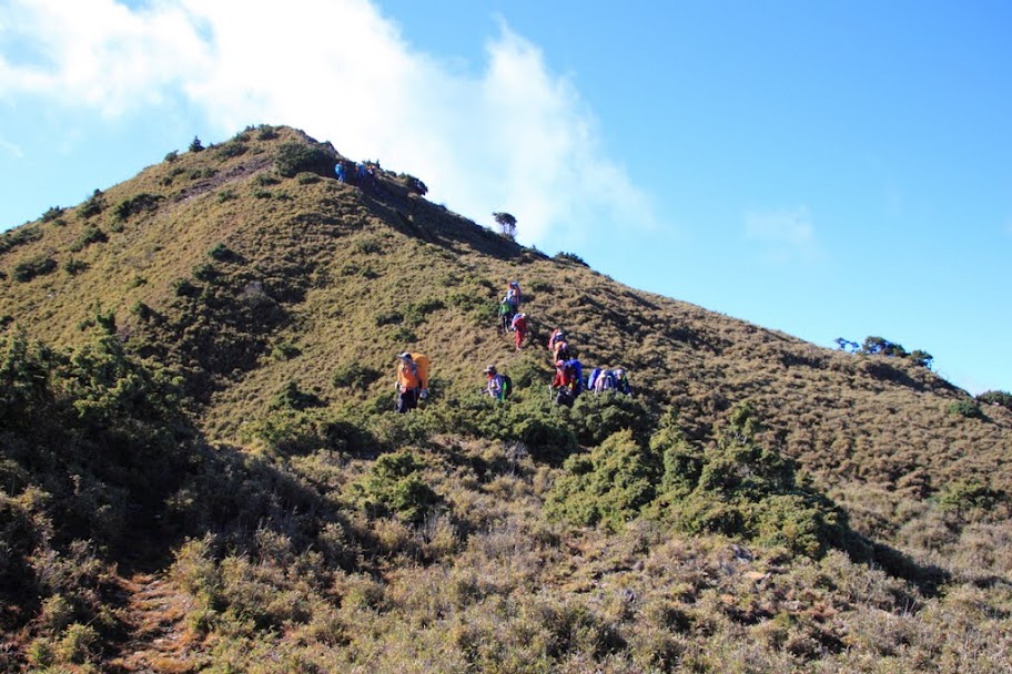 得準備晚餐公、私水、隔日早餐與行動水,午後出發的路徑便是一路陡上至