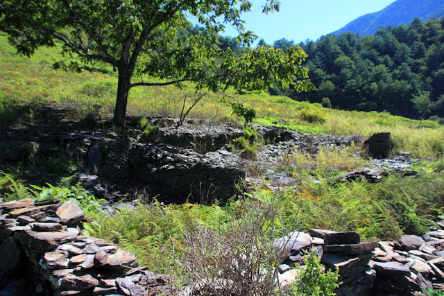 切前進一會後便陸陸續續出現殘落的石板屋遺址,依稀可想像當時的村莊聚落