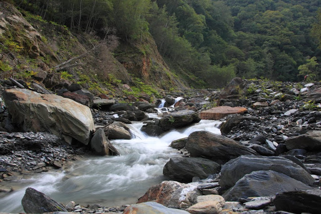 烏瓦拉鼻溪旁休息中的大夥們,1640晚餐後出發陡上續行