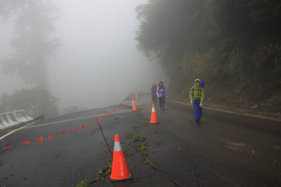 人重裝後便陸續穿越大關山隧道至西出口,約莫再步行1小時後抵塔關山登山口,