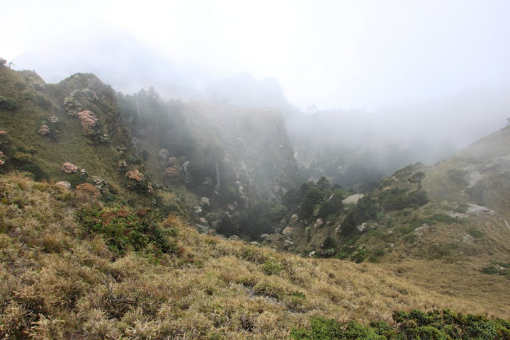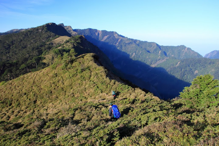 發。至三叉營地之間大都在稜線、斷崖上步行,或是箭竹林、或是稜左、或是稜右