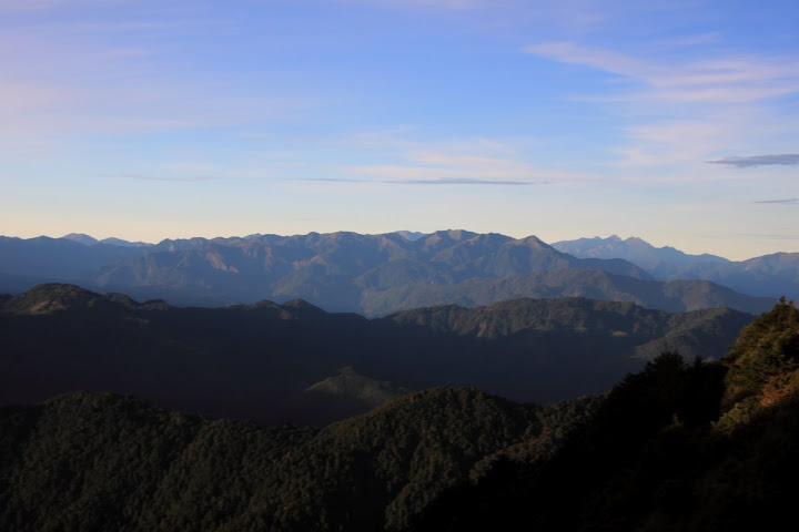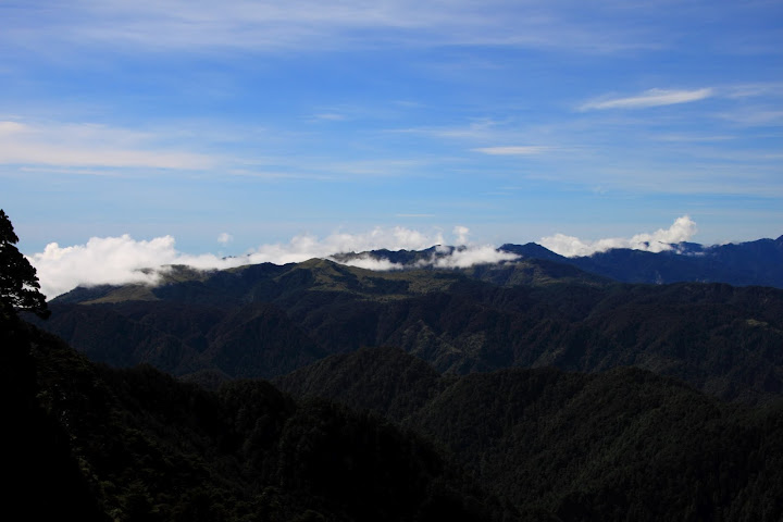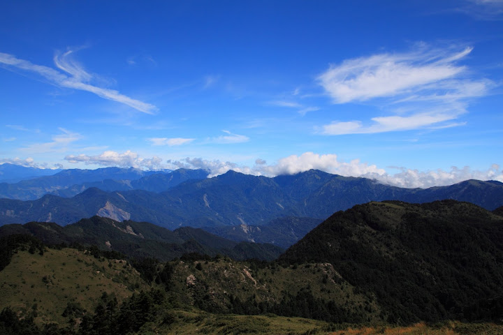 牧山上遠望疊疊山巒與藍天雲彩一景