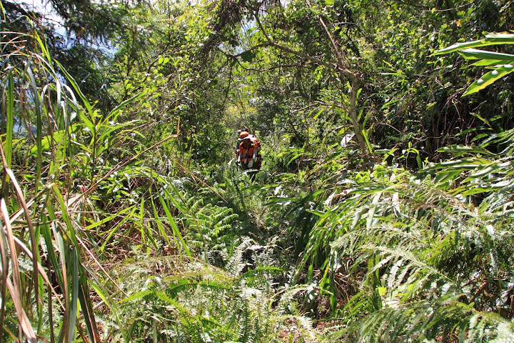 溪壩,時而走在荒廢的武界林道上,時而沿林徑布條下切而行,走在武界林道