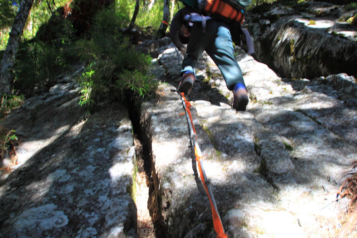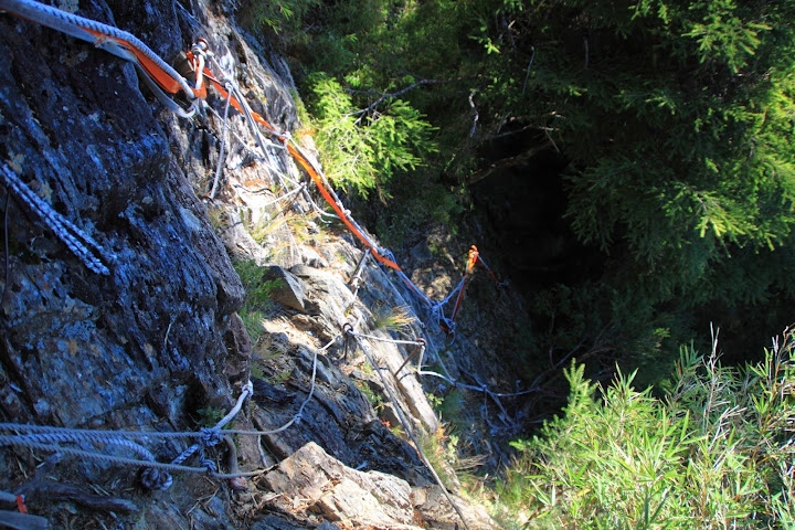 鐵線斷崖中一處拉繩踏釘而下之地形