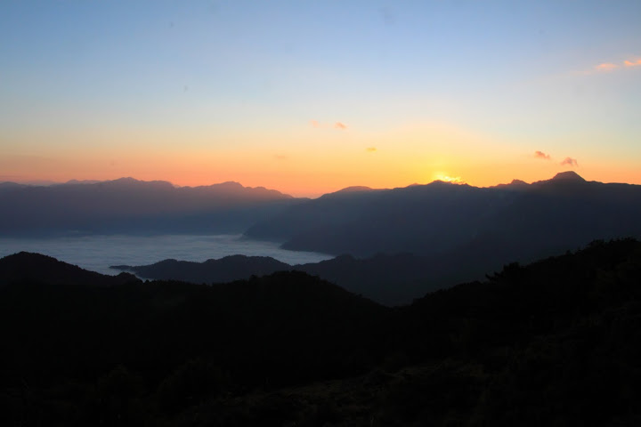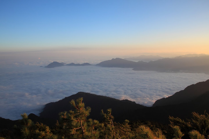 傍晚時之山巒與雲海一景